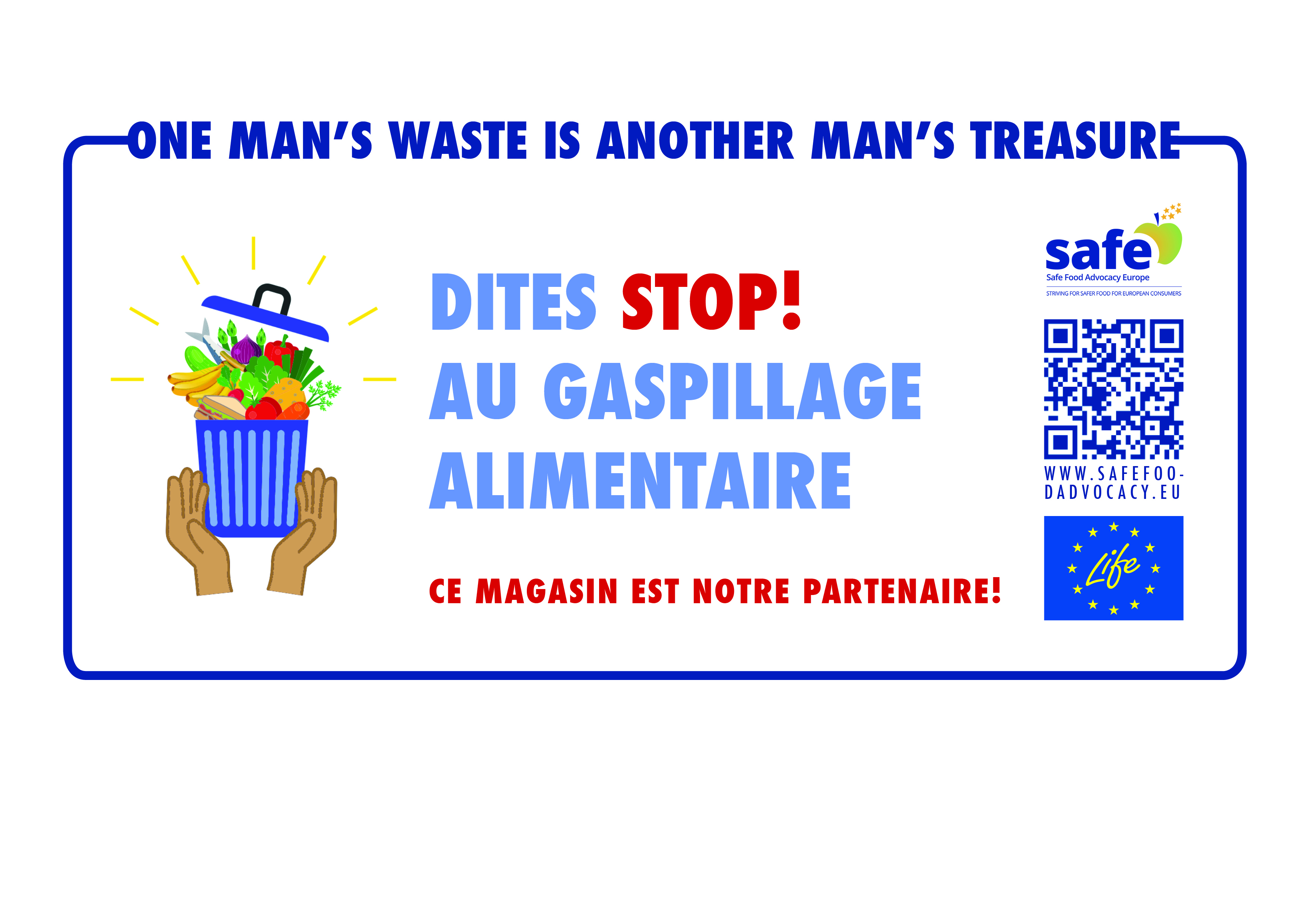 To fight food waste at the retail level, SAFE launched the “One Man’s Waste Is Another Man’s Treasure” in the City of Brussels in 2018, a pilot project designed to ensure a long-lasting and sustainable food surplus redistribution in the city. The project regrouped local authorities, hotels, shops and restaurants in a common network where food surplus was centralized and then redistributed on a weekly-basis to charity associations in Ixelles, Etterbeek and Bruxelles-Ville. The campaign 2018-2019 was supported by LIFE and Bruxelles Environnement – Leefmilieu Brussel.